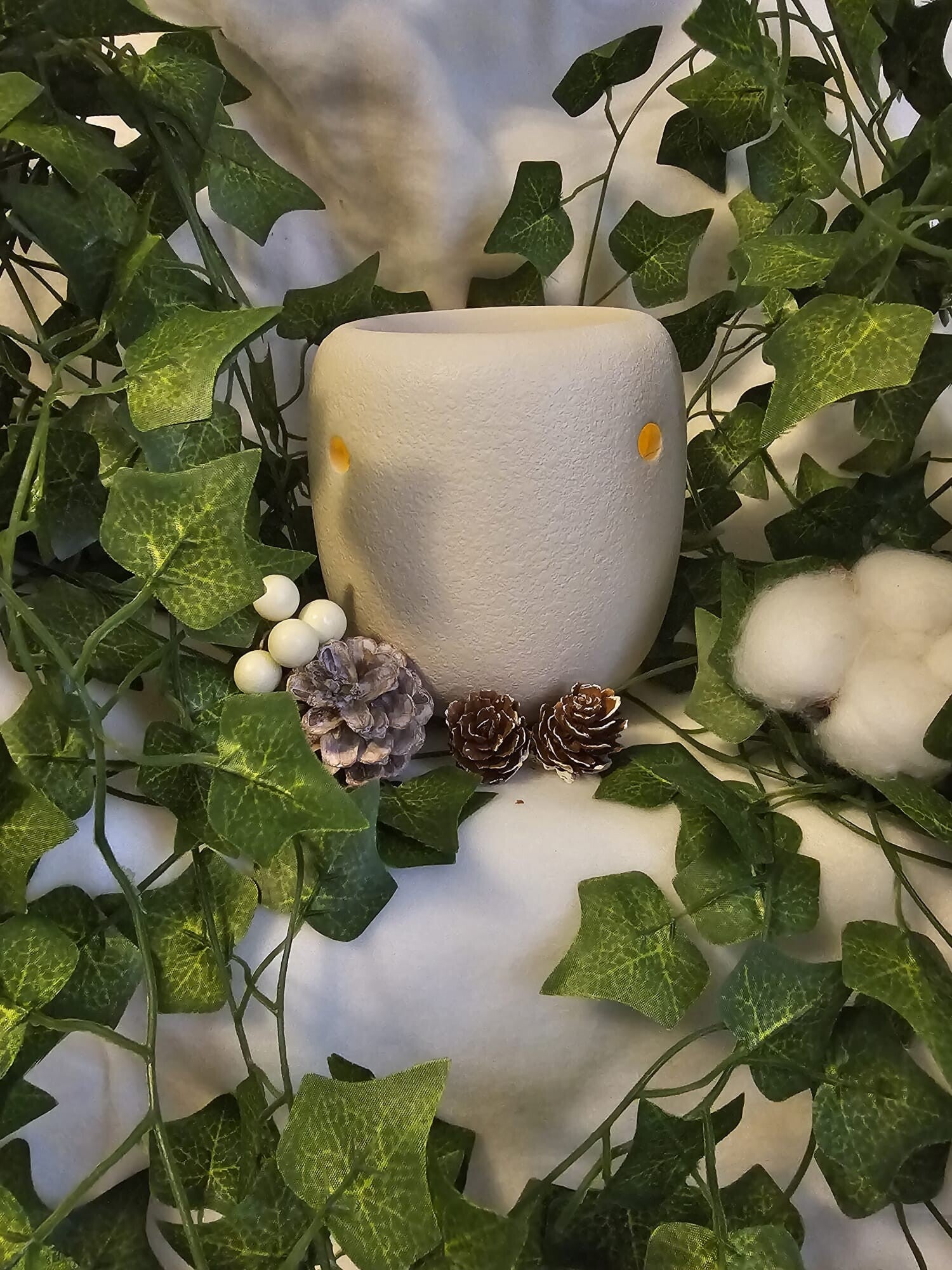 Magnifique brûle parfum au style atypique, avec un effet enduit, qui charmera votre intérieur et vous permettra de profiter de vos fondants préférés.